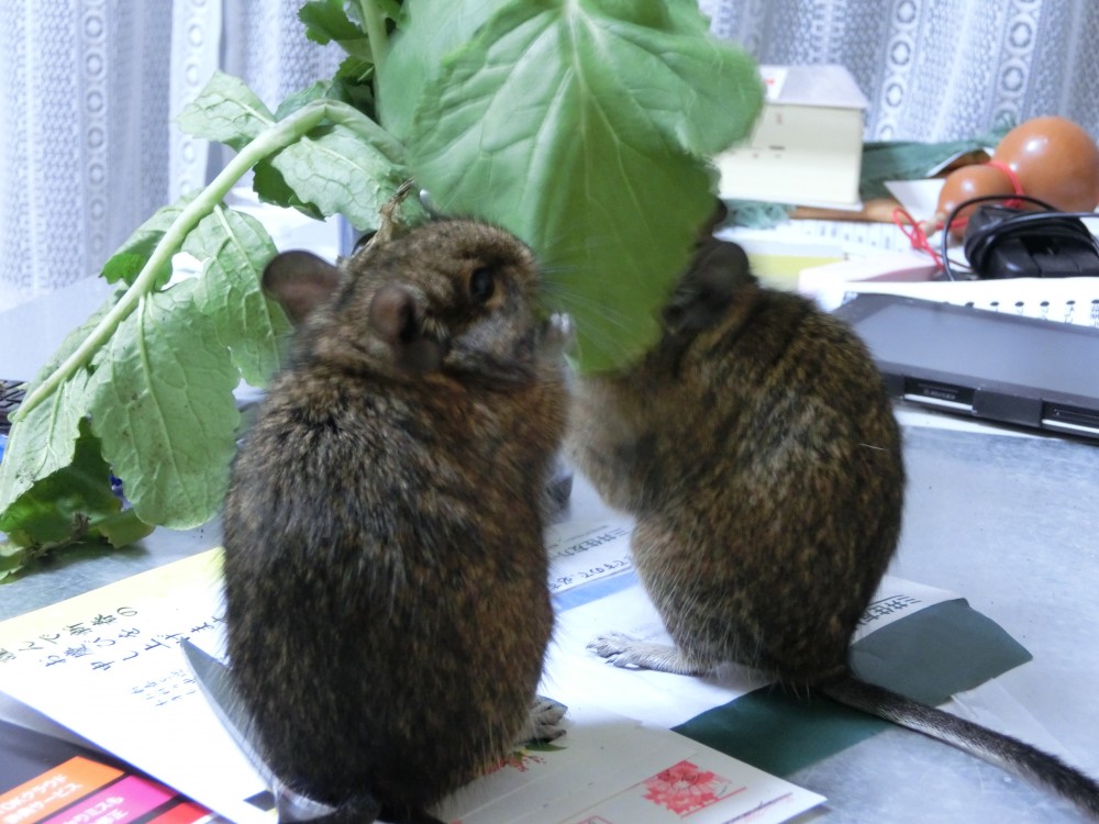 大根の葉っぱを食べるデグー達の写真集