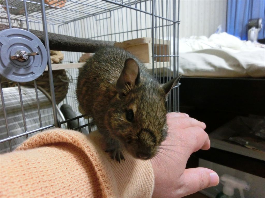 ケージから出てくるタロウ