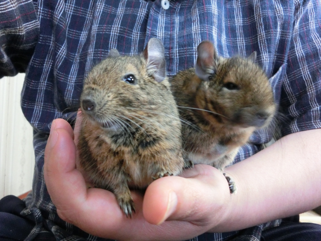 今日はちょっと寒かったので、手のひらで温まる二匹