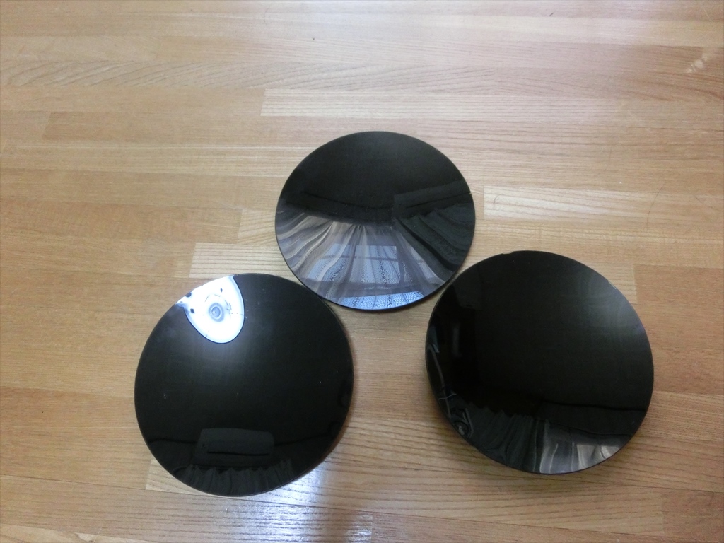 時計皿の凸面をラッカーで黒く塗ったもの