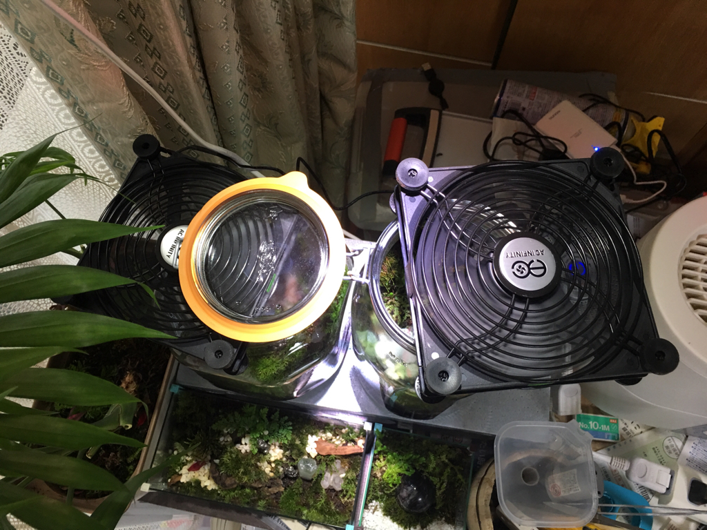 苔テラリウムにケースファン