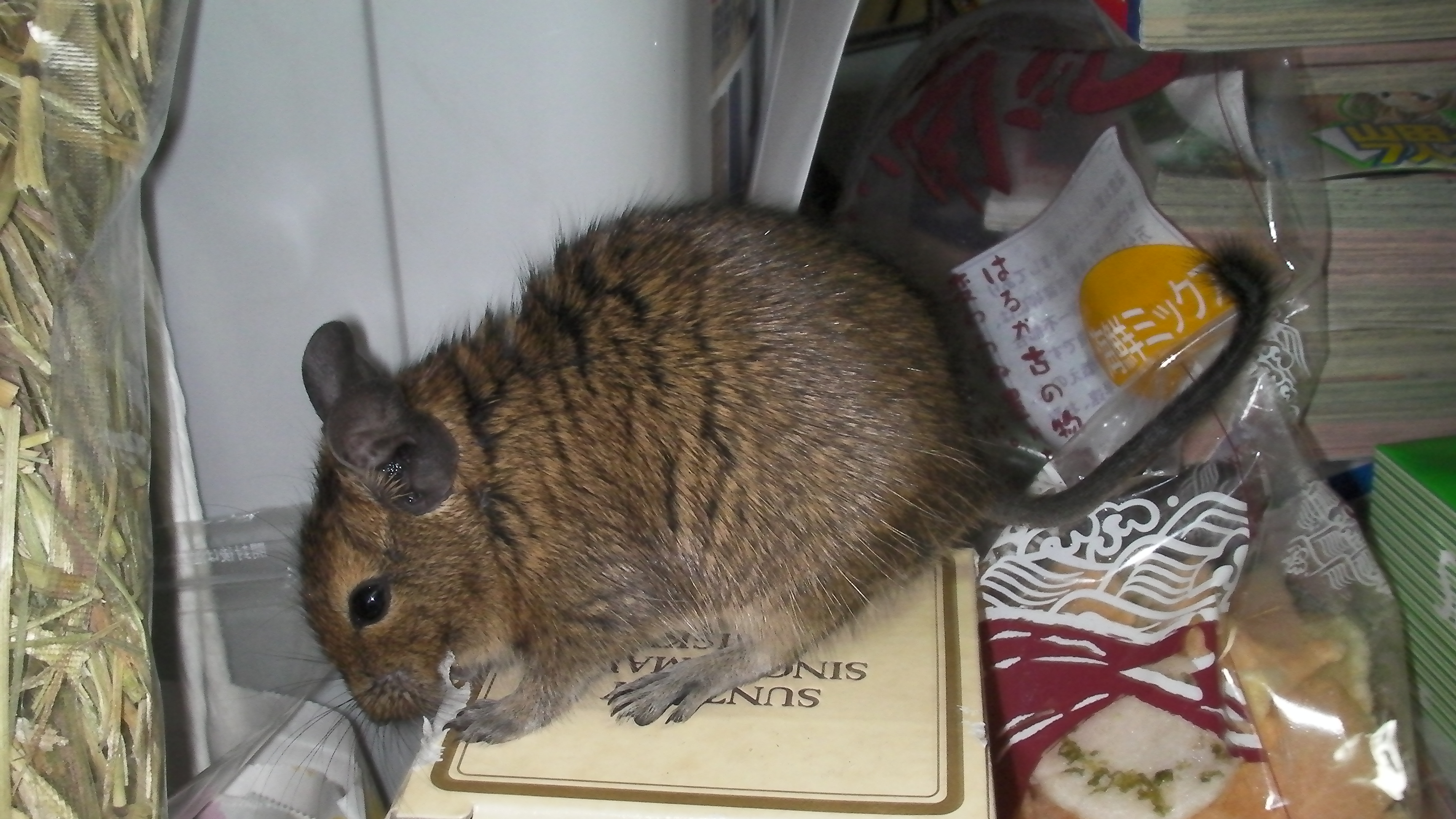 箱をかじるデグー