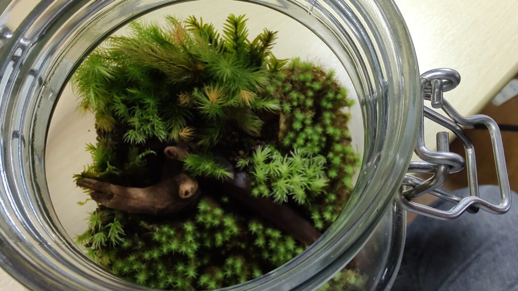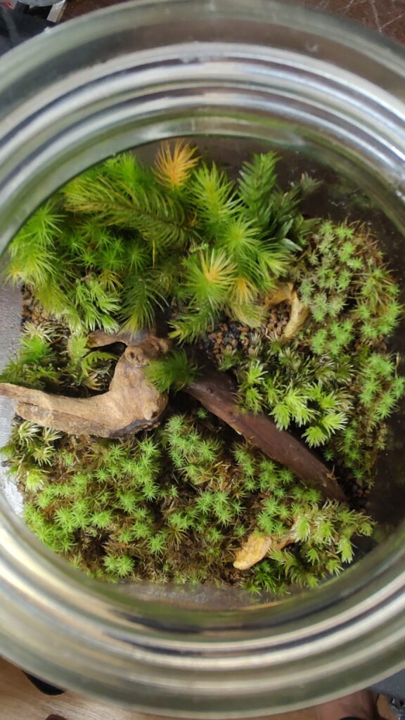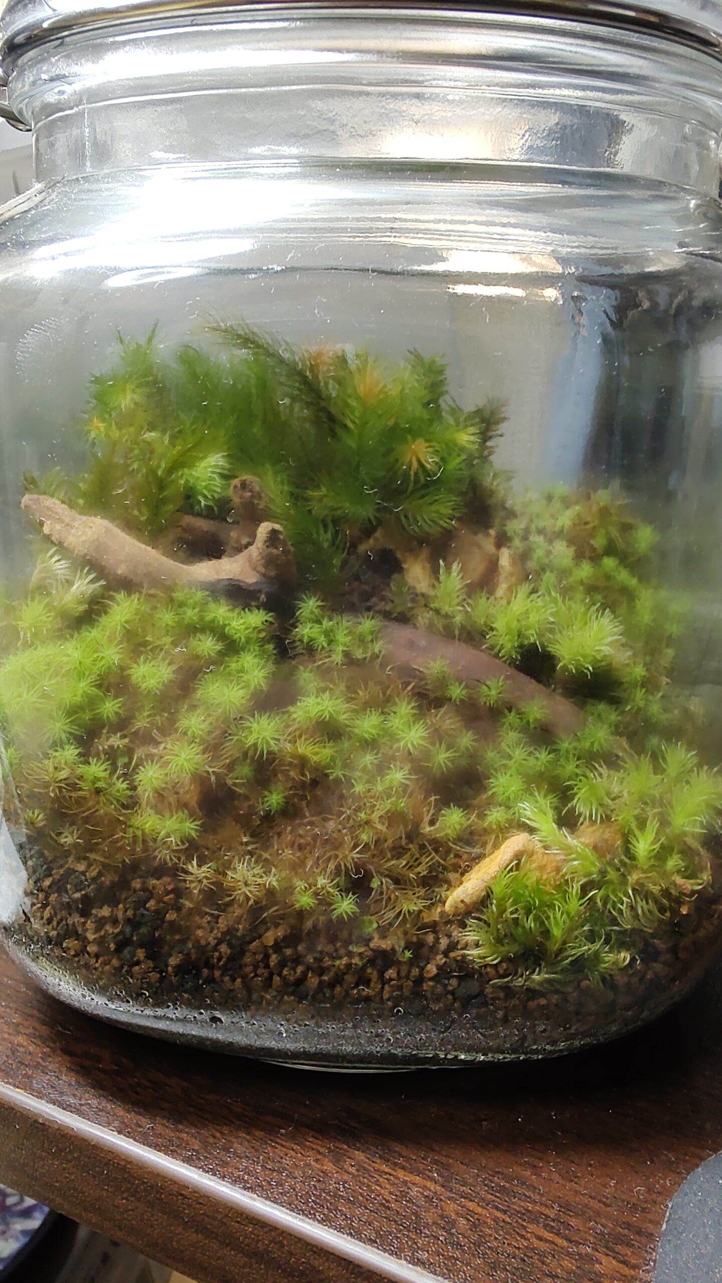 しかし。隠れ場所を沢山作ったので、子ガニは更に見つけづらくなった。そして更に先日、全面に砂ゴケを植えたのでもはやジャングルである。