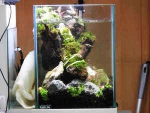 実は最近新しいアクアテラリウム水槽を追加した。水槽を購入したのは6月17日。その数日前からアクアテラリウムをやりたくて仕方が無く。なんとか我慢してた。しかし、苔テラリウムの小型ケースの一つが駄目になってしまったのを見て水槽追加の決意が固まった。