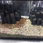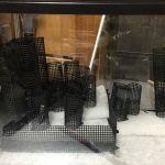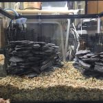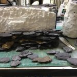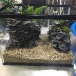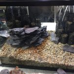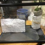 ホームセンターをハシゴして、最終的にGEXのマリーナM水槽(35.9×22×26.2cm)を購入。その他の必要な物を買ってきた。目玉は鉢底ネットを1m*1.5mくらい買ったことかな。底面フィルターを準備し翌18日は観葉植物と崖作りに使う水成岩の小石を大量に。小石を清掃し、乾燥して粉を拭き取り、様々準備していく。鉢底ネットで蛇籠を作成。そして珪砂や濾過砂利で底を作ってから、水成岩を積み上げる。接着はバスコーク。12時間の乾燥をした後に通水し、毒を洗い流す。