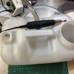 もう一つ、外部フィルターの自作を目論んだ。色々な方法があるが、密閉ガラス瓶に穴を空け、水中ポンプと繋げる方法を採る。幸い私は割と良いリューターを持ってるので、穴開けはスムーズに行えた。まぁさすがに5mm以上の厚さの蓋は苦労したけど。