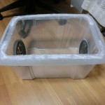 そこで、防塵ボックスの自作を考えることにした。自作にも色々有って、本格的な工作を必要とするモノはちょっと面倒くさい。材料となるアクリル板もそこそこ高価なようだし。そこで既存の透明の箱を流用して作る事にした。