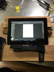 作業台も作った。本棚の余った仕切り板と、手近にあった杉板を合わせて作成。まぁまぁ使いやすい。人にみせる物じゃ無いしこれでいいだろう。タブレットに手刀部分が当たると誤動作するので、それの対策も行った。カービング用に買っていた作業用手袋を切り刻んでタブレット作業用手袋を作成する。まぁ買うより安いだろう。