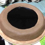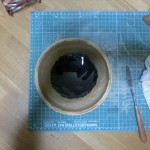 時計皿加工のブラックミラーを木粉粘土で覆い、加工した。