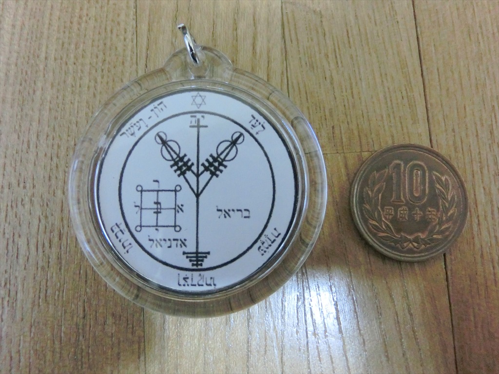 先週18日(木)の夜、木星4のタリスマンを作成した。サンワサプライの「手作りストラップキット(丸・特大)」を使って作成。