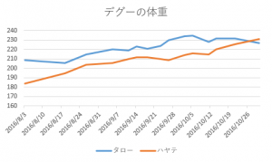 | タローとハヤテの体重 2016/10/30 | タロー | ハヤテ |