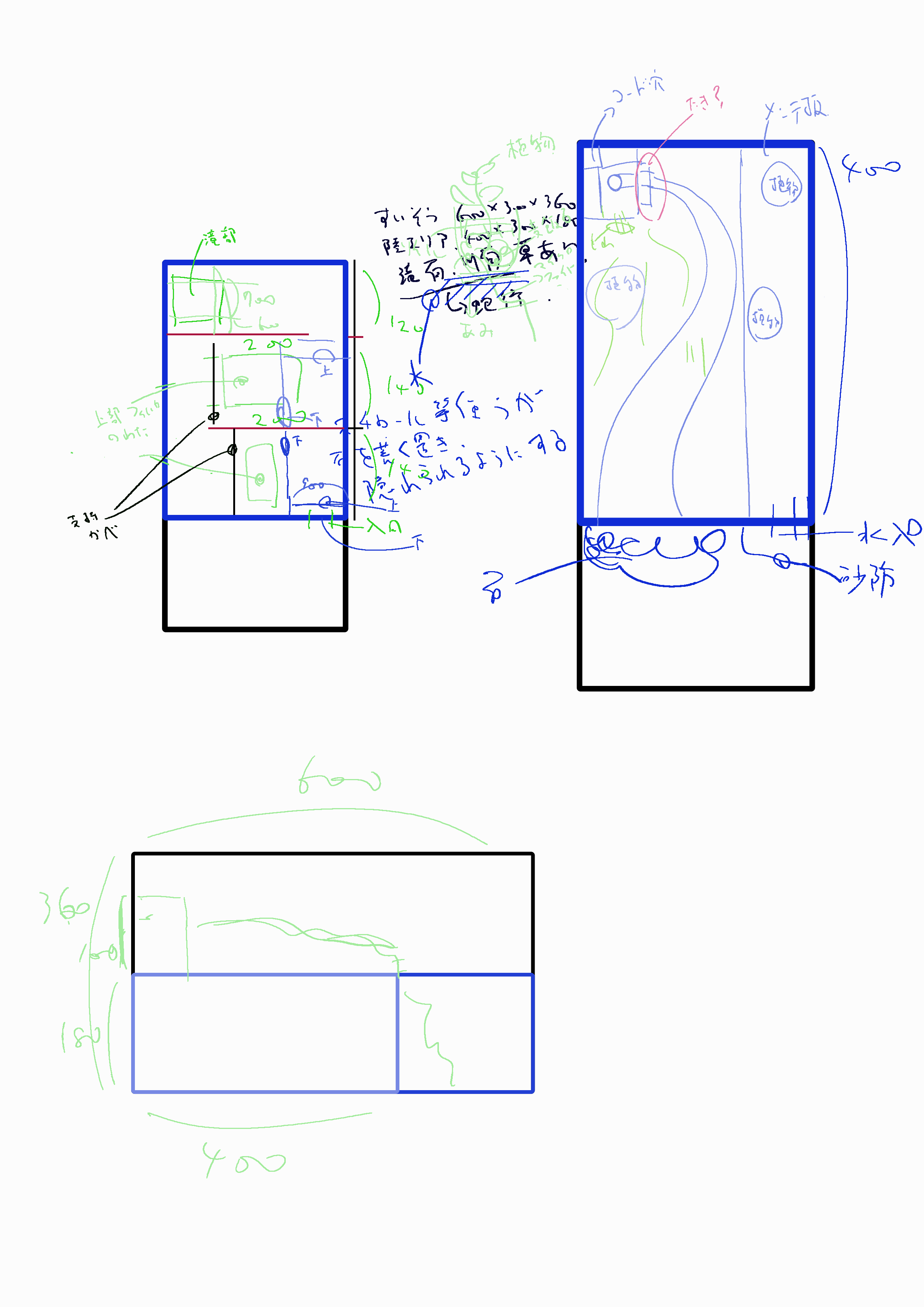 あと、カニ達の住処を拡大する事が第一の目的なので、とにかく陸上を延長した。もっと増やしても良かったかもしれないが、まぁ良かろう。とりあえず、400mm×300mmなので悪くなかろう。